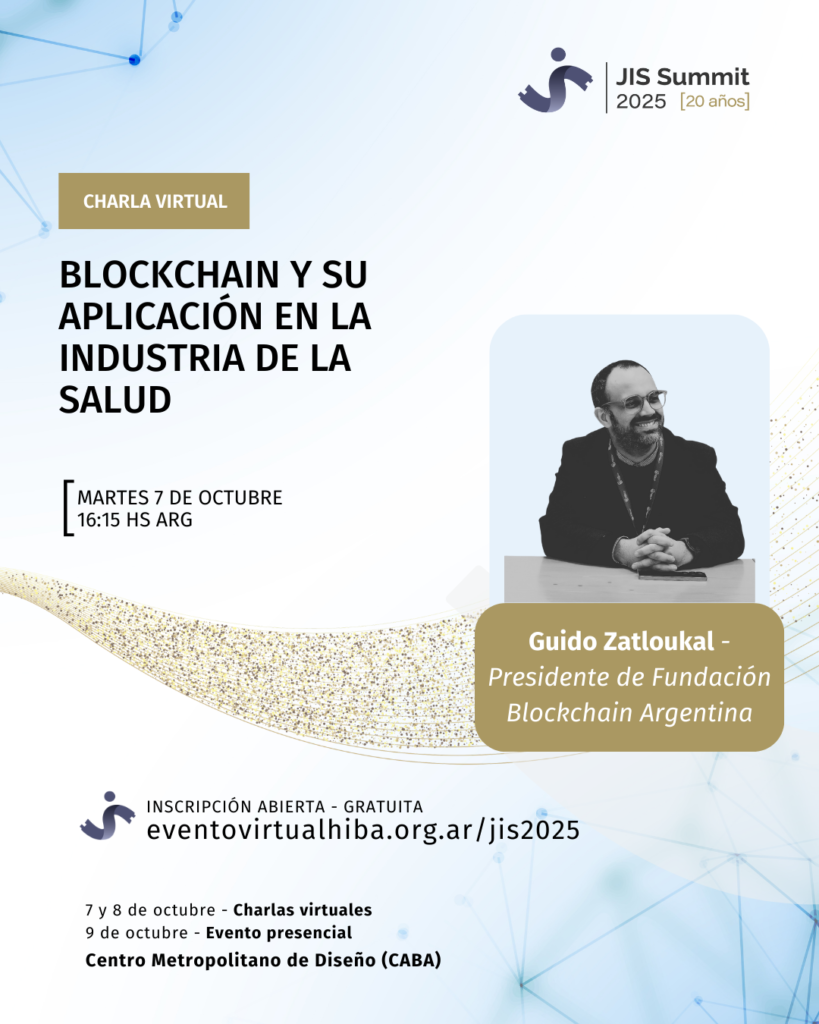 Guido Zatloukal, presidente de la Fundación Blockchain Argentina, participará con la charla Blockchain y su aplicación en la industria de la salud, el martes 7 de octubre a las 16:15 (modalidad virtual).